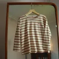 Lefe - Stripe Tshirt Atasan Kaos Salur Wanita Material : Cotton 24s Premium / Logo Bordir Size : All Size LD : 110 PB : 58 Ready : - Red - Blue - Mocca More Information silahkan chat admin ya #lefe #lefeid #stripe